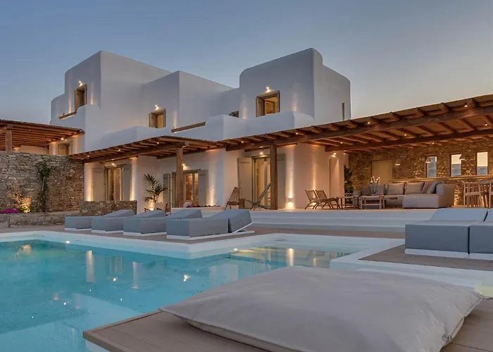 La Myconian Villa Caulk Kalafati si trova a una distanza di 2 km dal Monastero di Panagia Tourliani e offre una piscina coperta. Situata a circa 15 minuti in macchina dal Museo dell'agricoltura, questa villa offre Wi-Fi e un parcheggio privato.